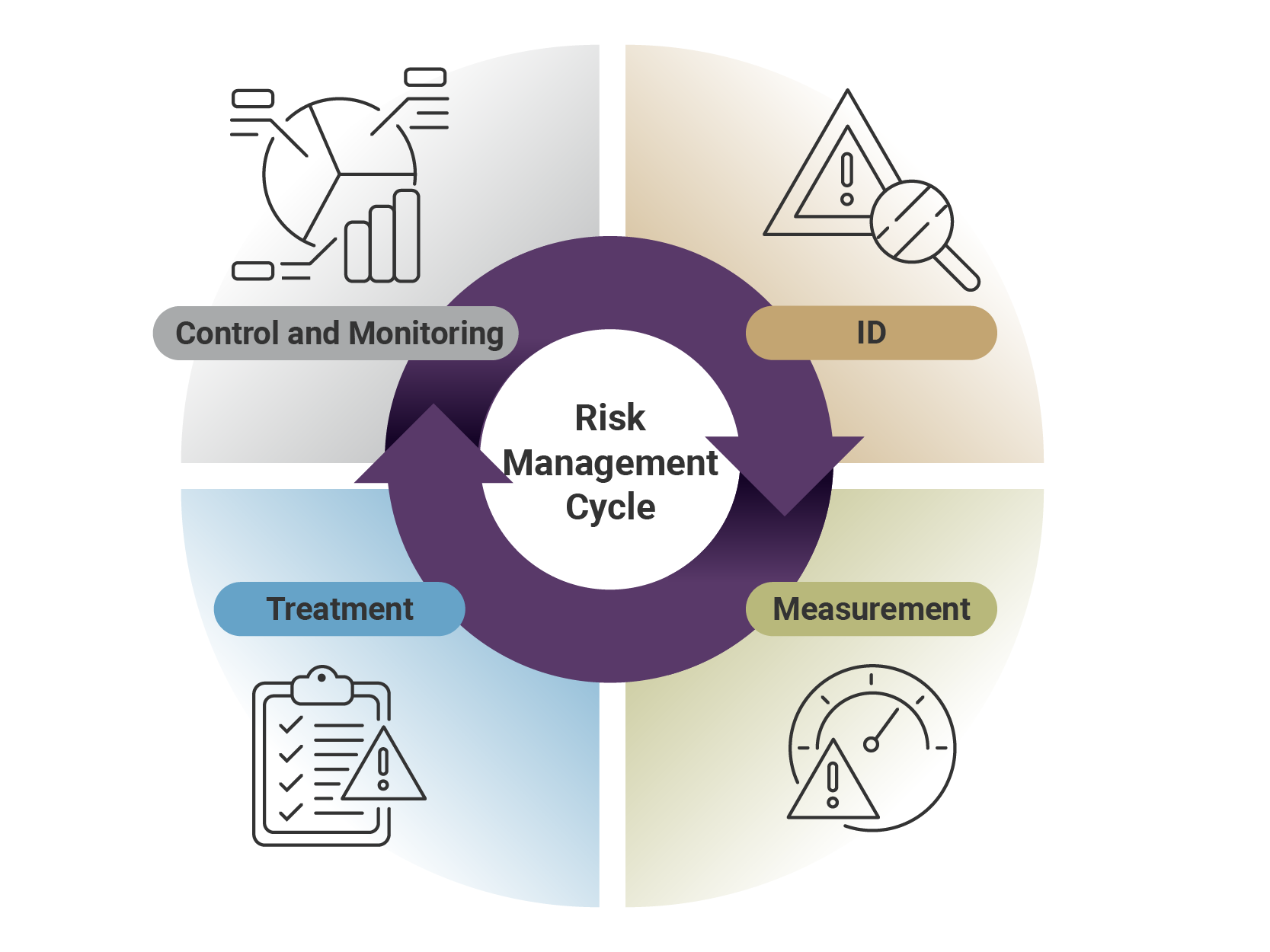 Control and Monitoring: Carry out follow up on the risk profile through different mechanisms with the purpose of taking timely measures (continuous improvement) to prevent and correct deviations from risks and from the risk management system.