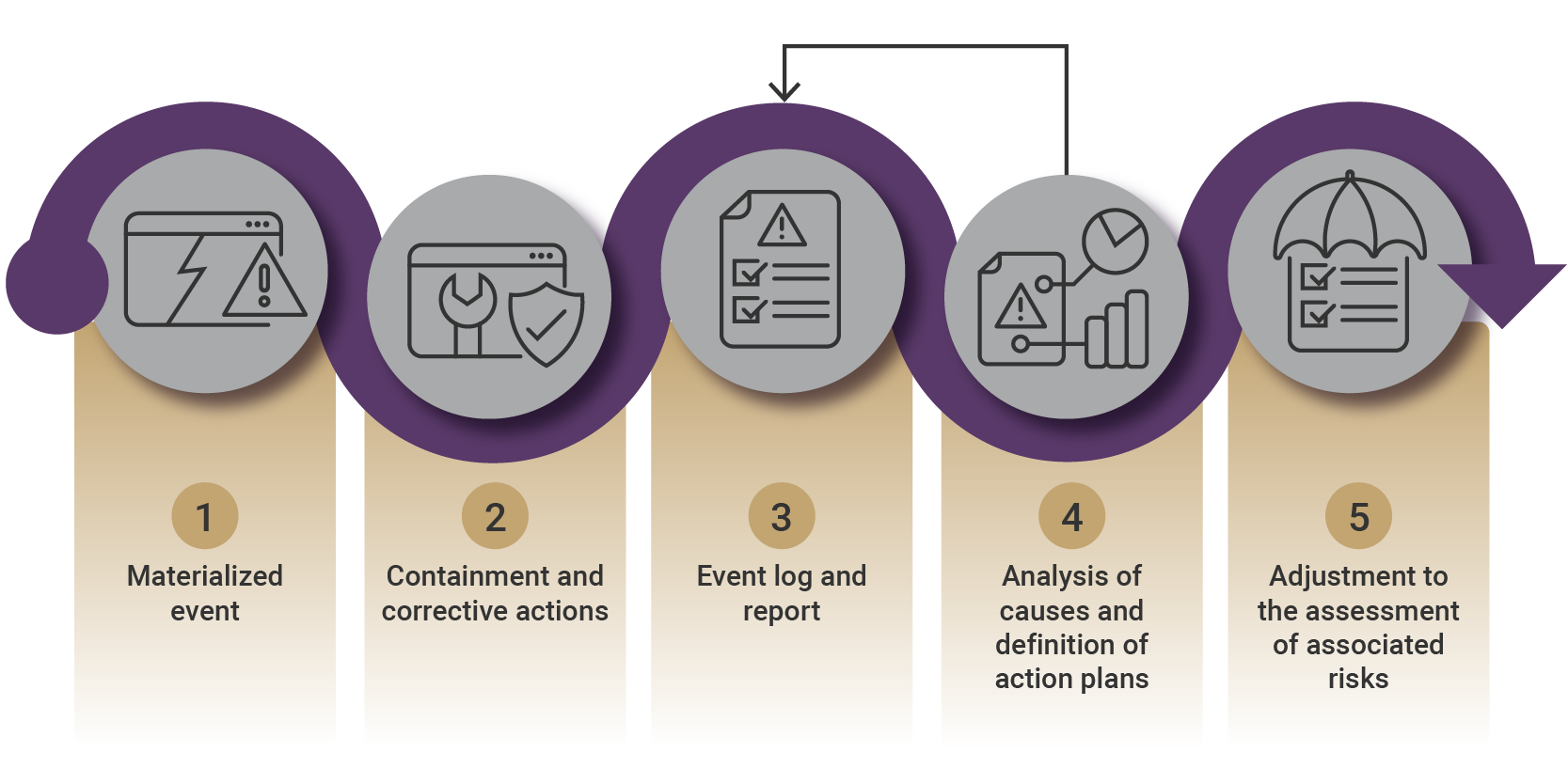 Risk events are incidents that represent the materialization of a risk or that alert of potential risks, and are generated by failures in internal processes, technology, infrastructure, people, or events generated by external sources.