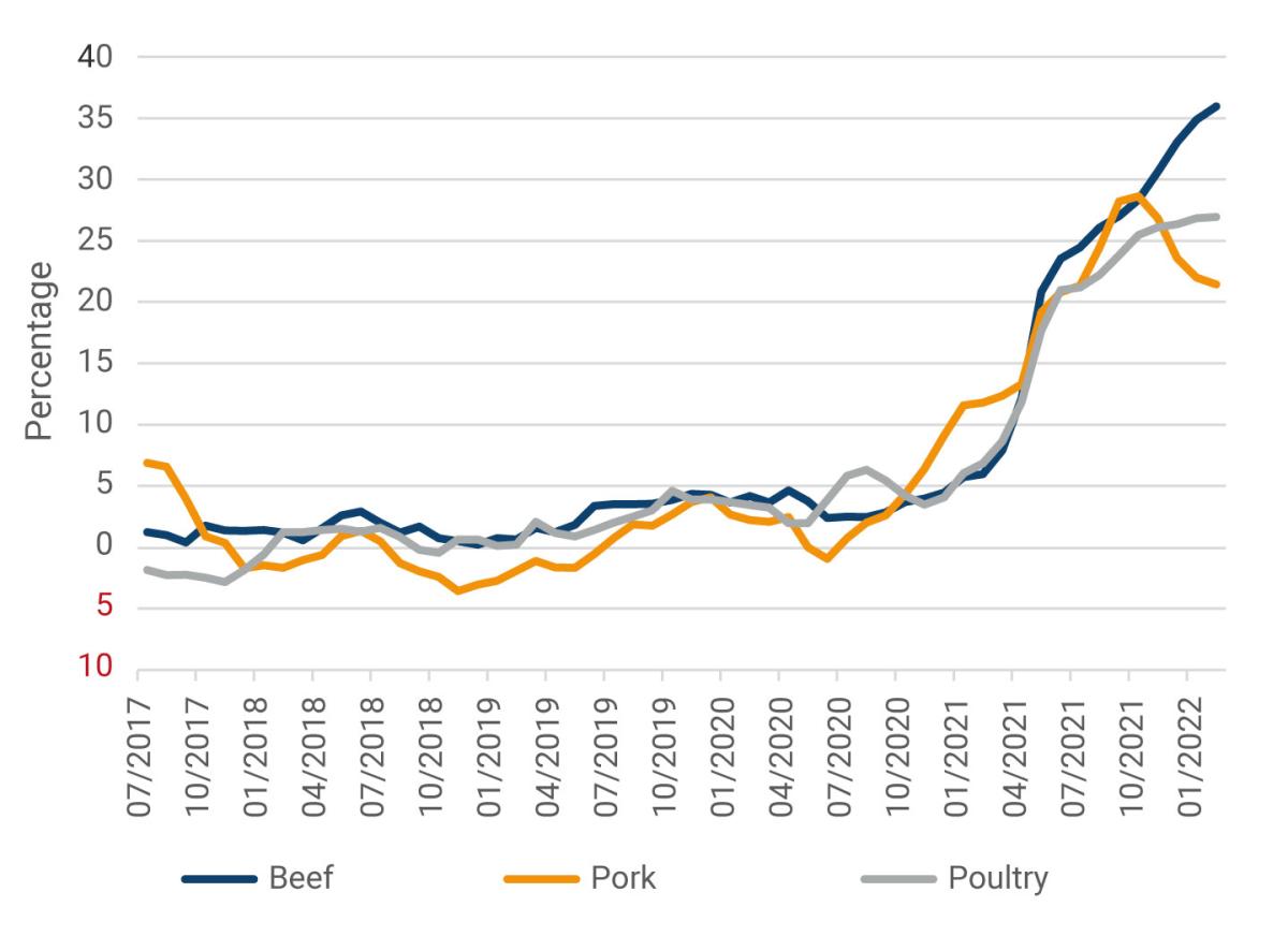 Note: The total meat CPI based on December 2018 includes beef, poultry, and pork prices.