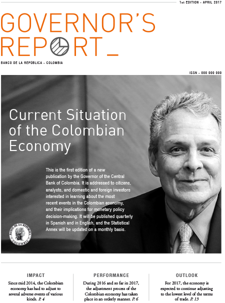 This is the first edition of a new publication by the Governor of the Central Bank of Colombia. It is addressed to citizens, analysts, and domestic and foreign investors interested in learning about the most recent events in the Colombian economy, and their implications for monetary policy decision-making. It will be published quarterly in Spanish and in English, and the Statistical Annex will be updated on a monthly basis.