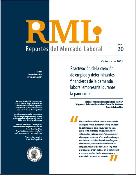 The Labor Market Report (RML in Spanish) series is a quarterly publication by the Labor Market Analysis Group (GAMLA, in Spanish) of Banco de la República (the Central Bank of Colombia), a group created in 2017. Opinions and possible errors are the author’s sole responsibility, and its contents do not compromise Banco de la República nor its Board of Directors.
