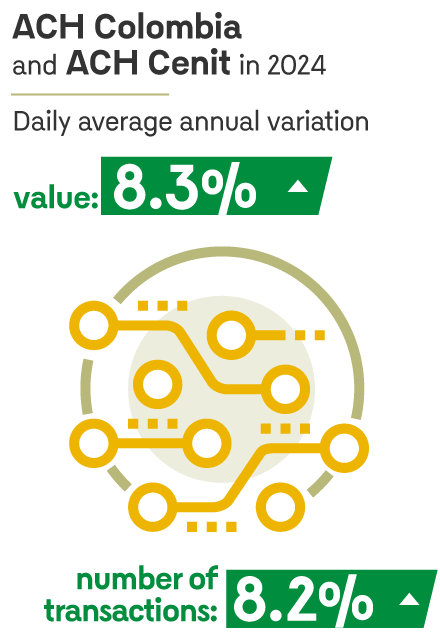 - In 2024, Colombia’s Automated Clearing Houses (ACH Colombia and ACH Cenit) recorded an 8.3% annual increase in transaction value and an 8.2% rise in transaction volume.