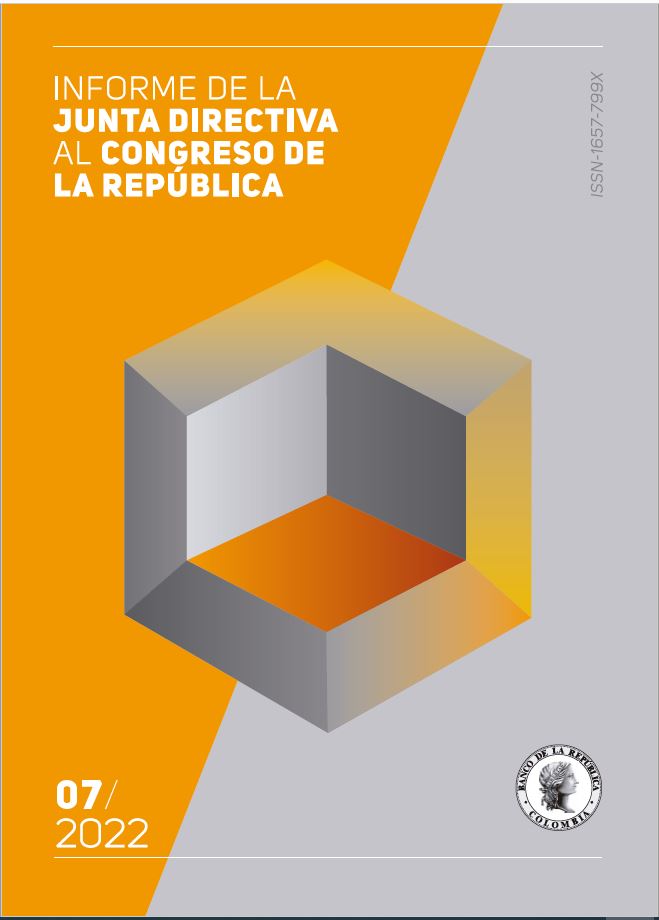 In compliance with Article 5, Act of Congress 31/1992, the Board of Directors of Banco de la República hereby submits to the Congress of the Republic of Colombia their Report to Congress on the macroeconomic results for the fi rst half of 2022 and the outlook for what remains of the year for its consideration. The recent developments in infl ation and the decisions made by the Bank’s Board of Directors in this context are presented. Furthermore, the changes in the local financial and the credit markets, the country’s foreign balance, the breakdown of the foreign reserves and their performance, the fi nancial position of the Bank and its forecasts, and the trend of payments in the Colombian economy are described.