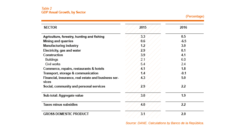 | II. Performance of the Colombian Economy in 2016 and so far in 2017 | |