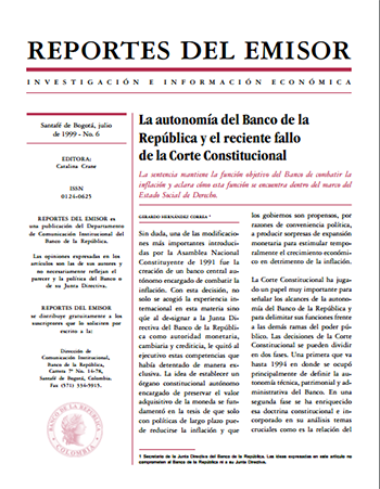 Reportes del Emisor es una publicación del Departamento de Comunicación y Educación Económica del Banco de la República. Las opiniones expresadas en los artículos son las de sus autores y no necesariamente reflejan el parecer y la política del Banco o de su Junta Directiva.