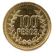 A partir del 8 de agosto de 1992, se encuentra en circulación las monedas de 100 pesos, acuñadas por la Casa de Moneda, de acuerdo con lo dispuesto en la Resolución Externa 19 de abril 3 de 1992 de la Junta Directiva del Banco de la República.