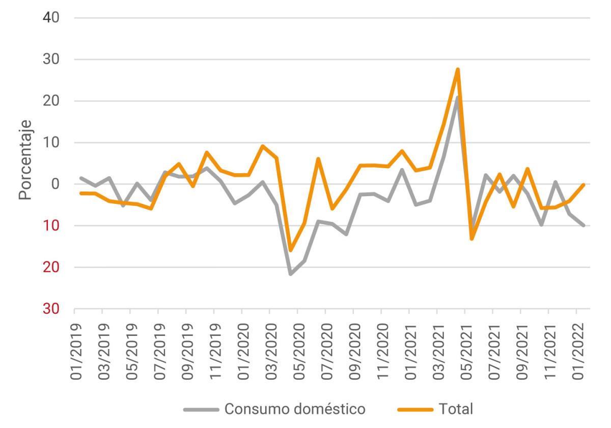 Gráfico 2. Cambio anual en cabezas de ganado vacuno total y para consumo doméstico