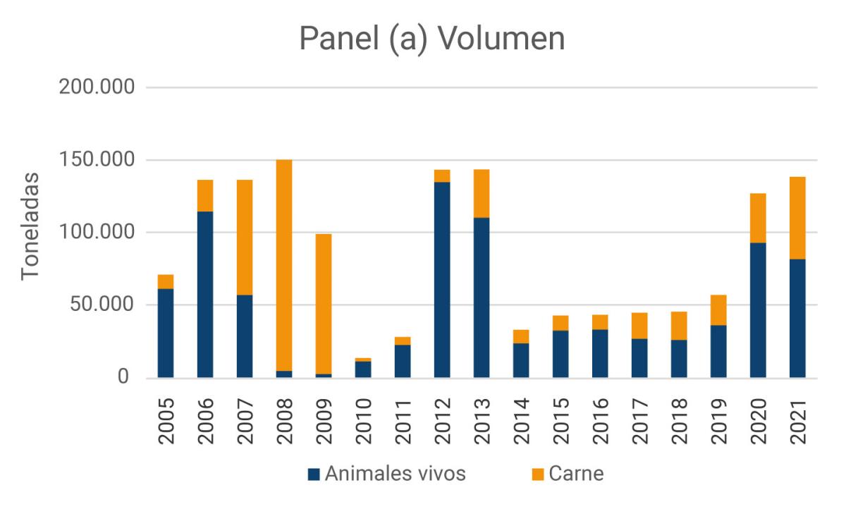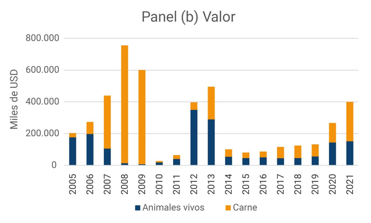 Gráfico 3. Exportaciones de animales vivos y carne de res