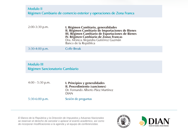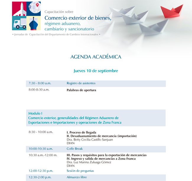 El Departamento de Cambios Internacionales del Banco de la República, con la participación de la Dirección de Impuestos y Aduanas Nacionales (DIAN), tiene el gusto de invitarlo a participar en las Jornadas de Capacitación sobre Comercio Exterior de Bienes, Régimen Cambiario y Sancionatorio, que tendrán lugar el próximo 10 de septiembre de 2015.
