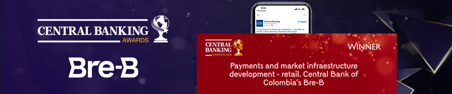 El Banco de la República fue galardonado en los Central Banking Awards 2026 por el desarrollo de Bre B, destacando su implementación ágil, una regulación proactiva y un proceso de adopción exitoso entre los participantes del mercado.