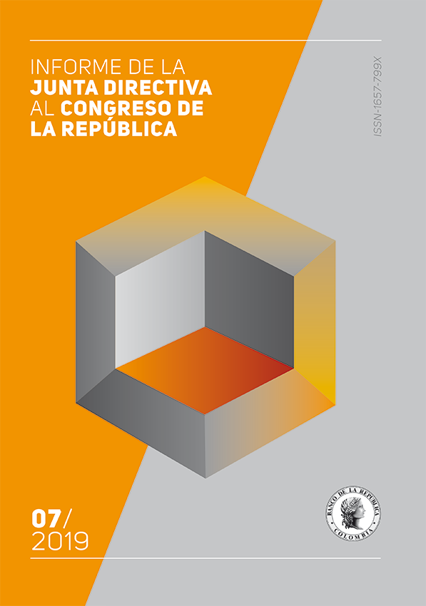 La Junta Directiva del Banco de la República, de conformidad con lo previsto en el artículo 5° de la Ley 31 de 1992, presenta a consideración del Honorable Congreso de la República un informe donde se señalan los resultados macroeconómicos del primer semestre de 2019 y las perspectivas para lo que resta del año. En los dos últimos capítulos se informa sobre la composición de las reservas internacionales y la proyección de la situación financiera del Banco de la República para 2019. El último capítulo analiza los medios de pago en la economía colombiana.