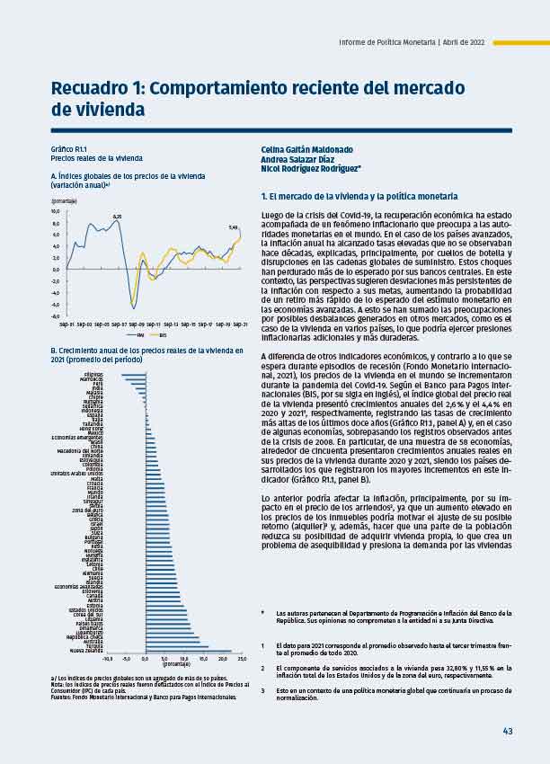 Recuadro 1: Comportamiento reciente del mercado de vivienda - Informe de Política Monetaria, abril 2022