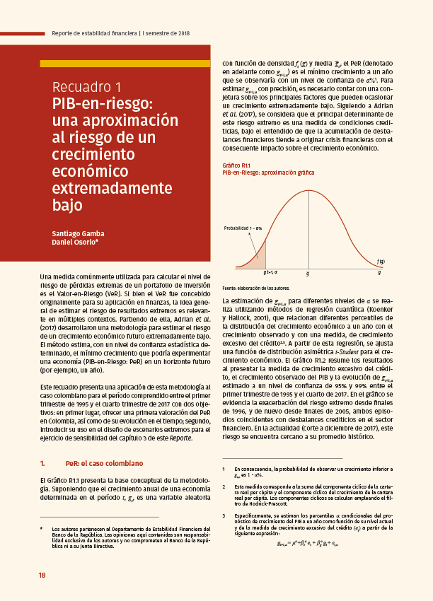 Recuadro 1: PIB-en-riesgo: una aproximación al riesgo de un crecimiento económico extremadamente bajo - Reporte de Estabilidad Financiera del primer semestre 2018