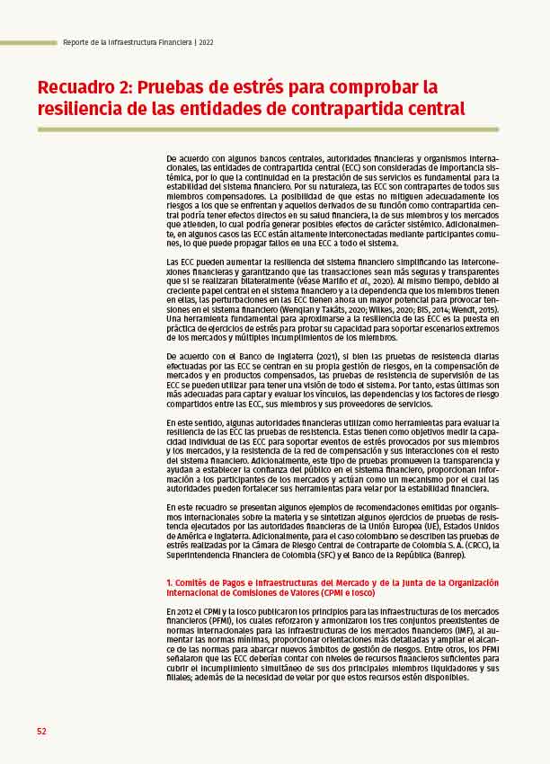 Recuadro 2: Pruebas de estrés para comprobar la resiliencia de las entidades de contrapartida central - Reporte de Infraestructura Financiera - 2022
