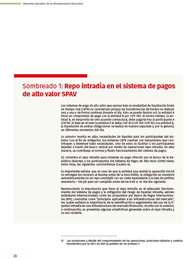 Sombreado 1: Repo intradía en el sistema de pagos de alto valor SPAV - Reporte de Infraestructura Financiera - 2022
