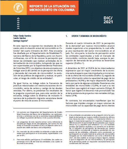 Reporte de la situación del microcrédito en Colombia - Diciembre de 2021