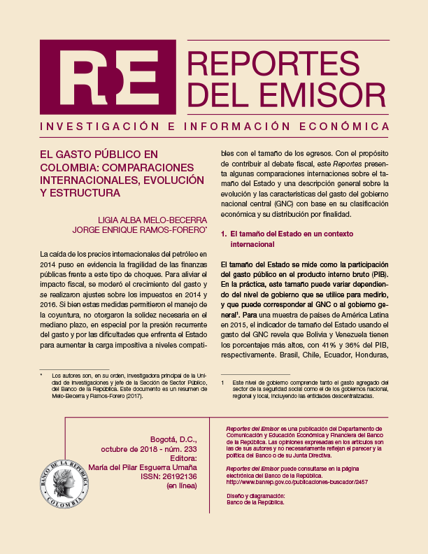 El gasto público en Colombia: comparaciones internacionales, evolución y estructura - Reportes del Emisor