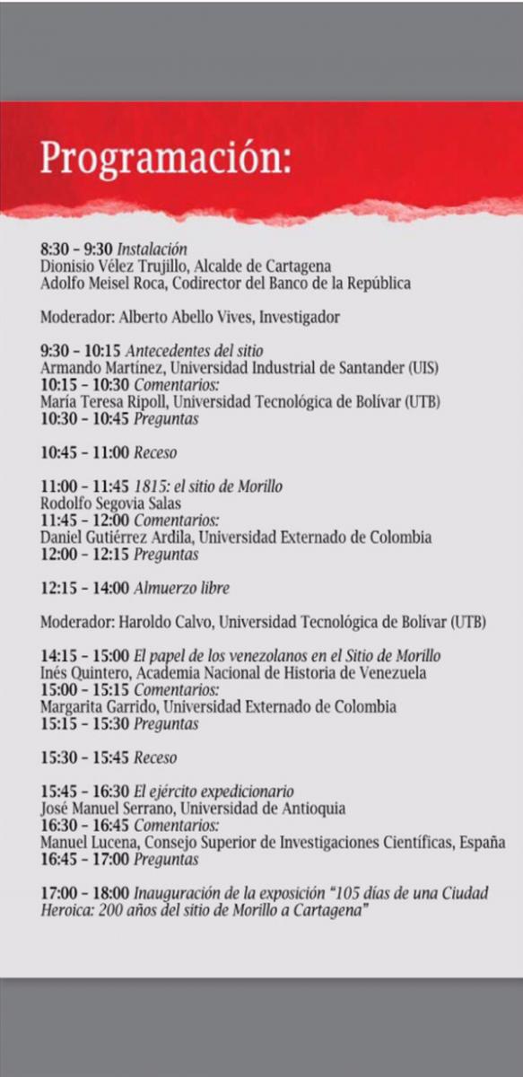 Seminario 200 años del sitio de Morillo a Cartagena de Indias