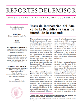 Tasas de intervención del Banco de la República vs tasas de interés de la economía