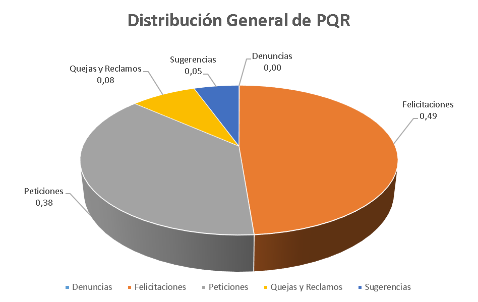A continuación se presenta un resumen de las solicitudes recibidas durante el primer semestre de 2018, las cuales fueron gestionadas por las diferentes Dependencias del Banco. Se atendieron en total 9.130 PQR, de las cuales 4.446 corresponden a felicitaciones, 3.450 a peticiones, 729 a quejas y reclamos, 501 sugerencias y 4 se registraron como denuncias. Lo anterior se presenta en el Gráfico 1.