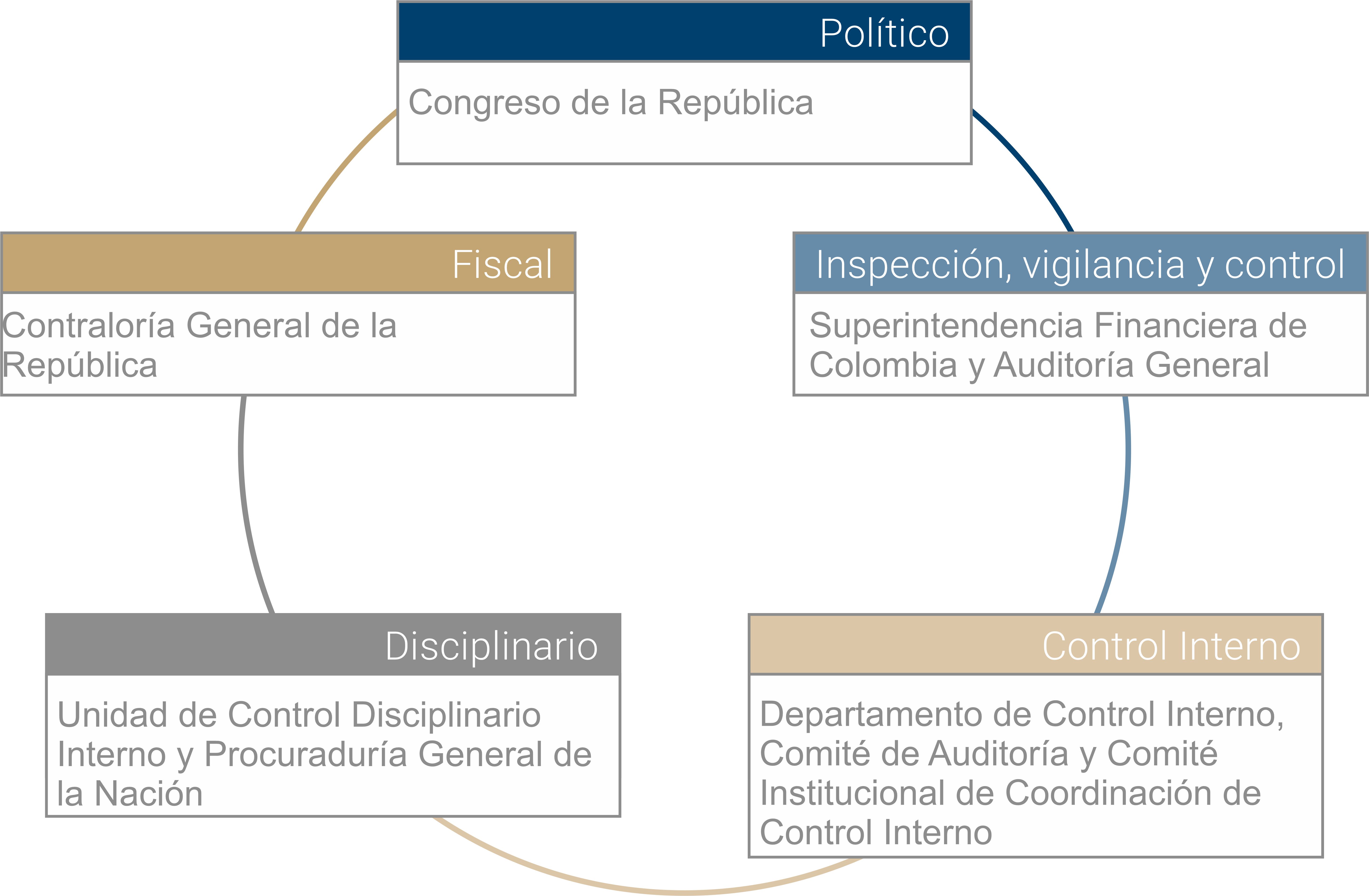A continuación se presenta el detalle de los frentes de control, los organismos que ejercen estas funciones, así como la normatividad que rige su actuación ante el Banco.