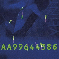 - Pequeñas fibras que muestran fluorescencia bicolor en amarillo y rojo, distribuidas aleatoriamente en todo el billete.