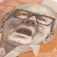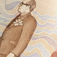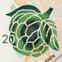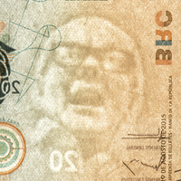 MARCAS DE AGUA - Al lado izquierdo del billete se descubre al trasluz el rostro del presidente, con efecto tridimensional, y el número "20".