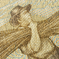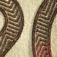 Al mismo lado, al observar al trasluz, una orejera zenú impresa por el anverso se complementa con otra orejera, impresa por el reverso, para formar un sombrero vueltiao visto desde arriba.