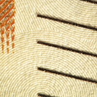 IMAGEN DE FONDO - En algunas áreas se observan ondulaciones, con diferentes tramas de líneas fina, en tonos naranja, café y violeta.