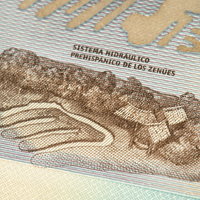 CINTA DE SEGURIDAD - Al trasluz se observa la cinta de seguridad que está dentro del papel, en la que se identifica el texto "BRC" y la silueta de la orejera zenú.