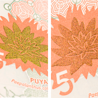 - IMAGEN CON CAMBIO DE COLOR - La planta de la puya está impresa en color cobre y al girar el billete la parte interna cambia a color verde.
