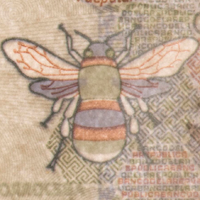 - IMÁGENES COINCIDENTES - Al mismo lado, al observar al trasluz, la imagen del abejorro impreso por el anverso se complementa con otro abejorro, impreso por el reverso.