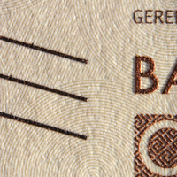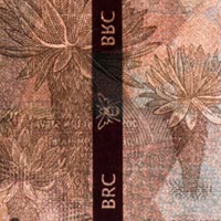 CINTA DE SEGURIDAD - Al trasluz se observa la cinta de seguridad que está dentro del papel, en la que se identifica el texto "BRC" y la silueta del abejorro.