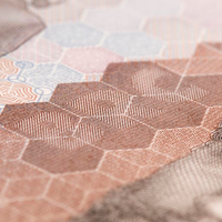 - BACKGROUND IMAGE - In some areas, hexagonal shapes with different prints of fine lines in green, red, blue and brown can be observed.