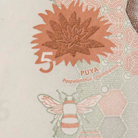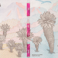 - IMAGE WITH COLOR CHANGE - The puya plant is printed in a copper color, but when tilting the banknote the inner part of the image changes to green.