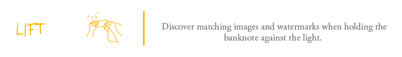 - SECURITY RIBBON - The text "BRC" and the silhouette of the bee can be seen in the security ribbon when holding the banknote against the light.