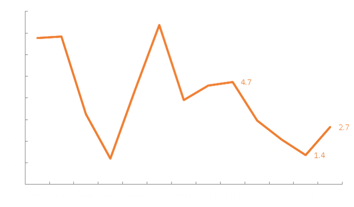| Manufacturing industry | -1.8 | 0.1 | 2.5 | 2.8 | 2.6 | 2.0 | ||||||