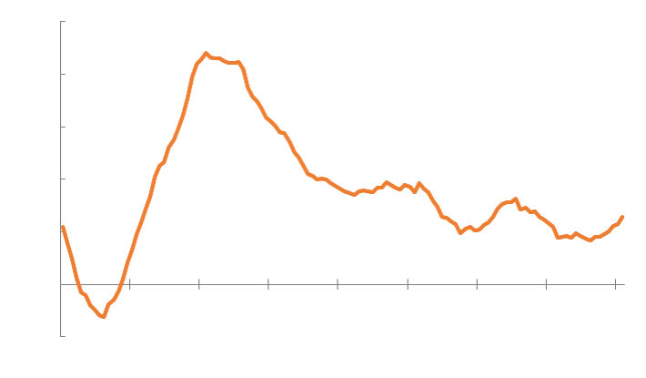 The current account on Colombia’s balance of payments fell drastically in response to the oil shock of 2014, increasing from a deficit of 3.3% of GDP in 2013 to 6.3% of GDP in 2015. This increase in Colombia’s external imbalance was driven by a reduction in the value of exports at the time. In 2016 and 2017, the external imbalance was corrected considerably, with the current account deficit falling to 4.2% and 3.3% of GDP, respectively. That correction came about initially from a significant reduction in imports and the remission of utilities abroad by international oil companies. However, the makeup of that adjustment changed in 2017, when exports rebounded and other external revenues outpaced the increase in imports. |