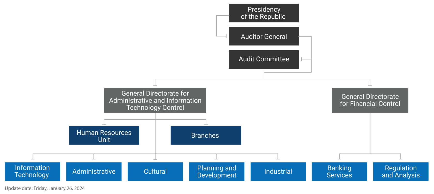 The following is the organizational structure of the Auditor General’s Office approved by the Board of Directors according to Act 4031 of 16 December 1994.