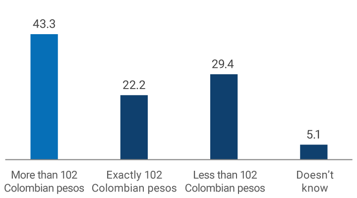 - Less than 102 Colombian pesos
