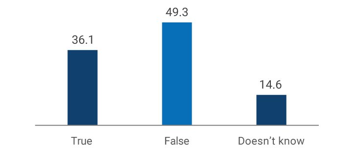 Regarding the question on inflation (Graph 3), this concept is well known in Colombia, as 79% of the respondents answered it correctly. Compared to other countries where similar surveys have been conducted, this percentage was higher only in Bulgaria (80.4%). However, countries such as the United States (53.1%), Singapore (74.8%), Romania (69.6%), Italy (66.8%), Finland (64.5%), Japan (61.6%), Uruguay (58.1%), Bosnia-Herzegovina (52.0%), and Perú (47.1%) recorded lower results than Colombia. Conclusions from these comparisons must be taken with caution because not all surveys were conducted in equal environments. However, they shed some light on where the smallest and largest knowledge gaps in financial education in Colombia are.