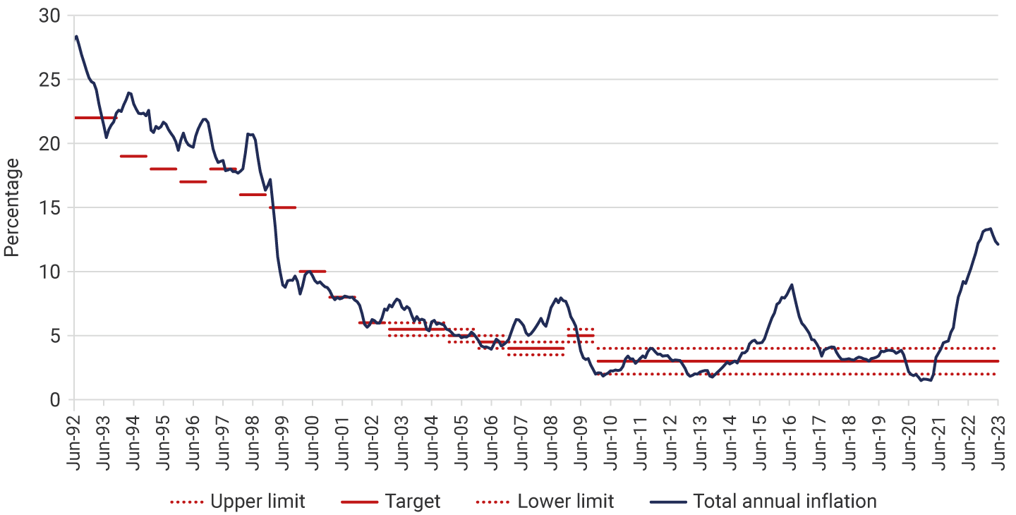 The tangible achievements made by Banco de la República (the Central Bank of Colombia) in managing inflation over the last two decades gave the BDBR the necessary elements to confidently face the difficult challenge of bringing the current high level of inflation back to its long-term target of 3.0%. Recent signs are encouraging. After peaking at 13.3% last March, annual inflation began to decline to 12.1% at the end of June. Monetary policy will continue to focus on achieving this objective while ensuring the sustainability of economic activity, as mandated by the Constitution. The forecasts of the technical staff, the expectations of economic analysts, and those derived from public debt markets coincide in that consumer price inflation will continue to decline during the remainder of 2023, and that this process will consolidate during 2024. The BDBR will remain attentive to the performance of inflation in the coming months and will monitor the risks that would arise from a new El Niño phenomenon, from exchange rate pressures, or from changes in the global context, in order to adopt the monetary policy stance it deems most appropriate in a timely manner.