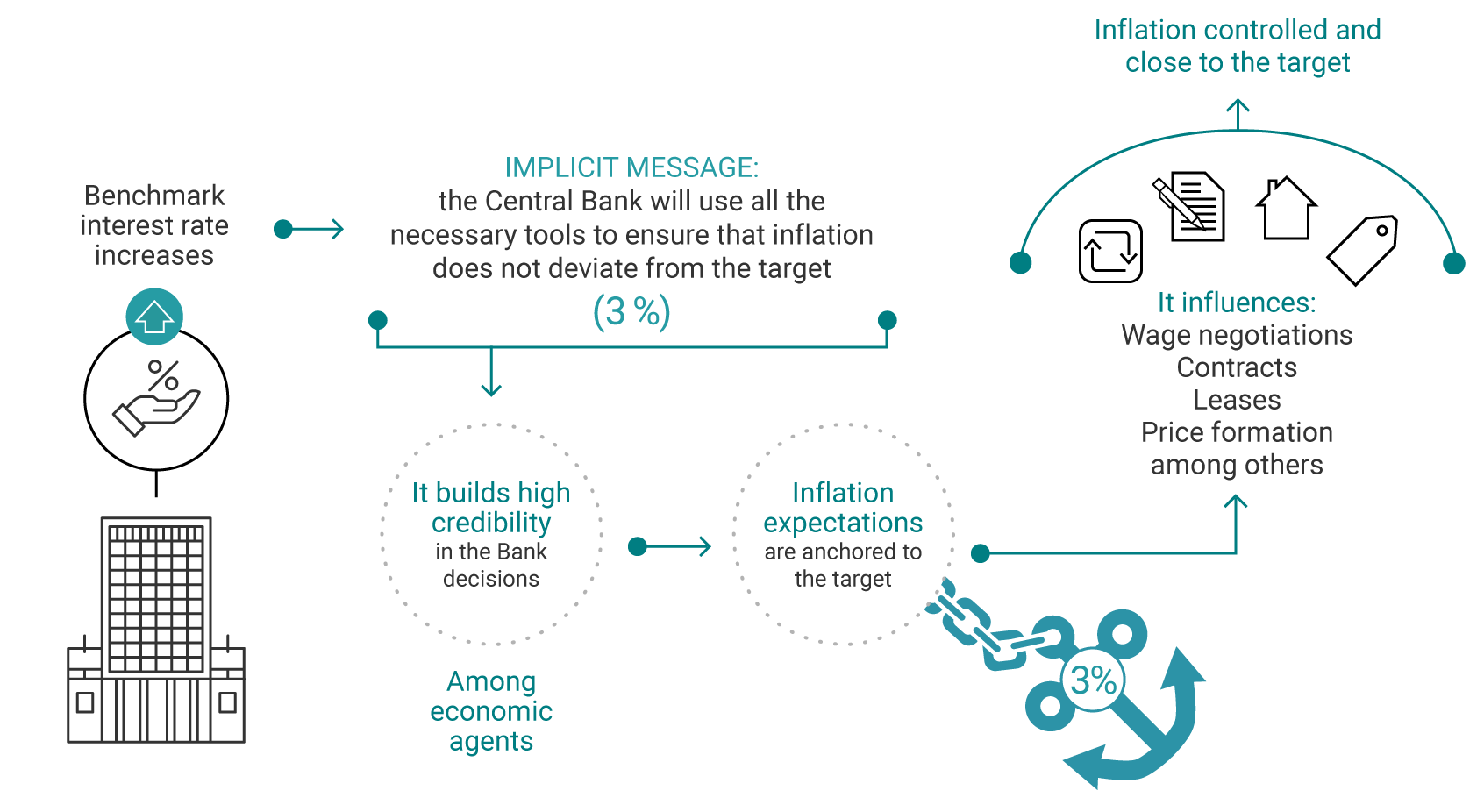 In the current monetary policy scheme, known as inflation targeting, the credibility of economic agents that the monetary policy actions of Banco de la República will, indeed, lead to inflation to its 3.0% target is very important. This is because inflation expectations play a crucial role in price formation, wage, contract, and lease negotiations, partly due to the fact that many of these negotiations are linked to inflation (this is known as indexation).
