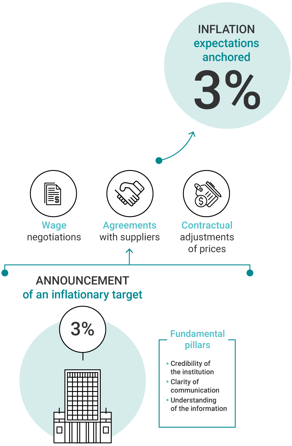 Since evidence has shown that this is a very important inflationary channel, the control of expectations by the monetary authority depends on several factors, such as institutional credibility, clarity in communication, and economic education, that helps to understand monetary policy decisions. These three factors are fundamental pillars in the current monetary policy schemes, and they seek to influence the inflation expectations of economic agents in their decision-making.