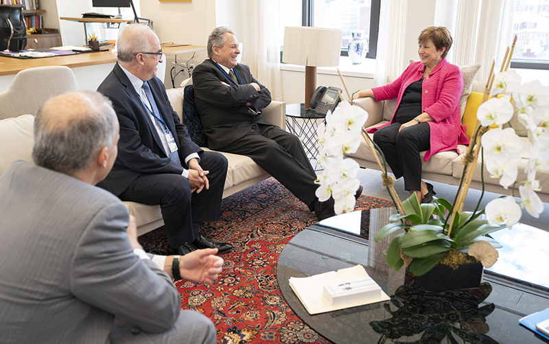 In the framework of the annual meetings of the International Monetary Fund (IMF) and the World Bank (WB) in Washington DC, the Governor of Banco de la República, Juan José Echavarría, held a bilateral meeting with the new Managing Director and Chairwoman of the IMF, Kristalina Georgieva.