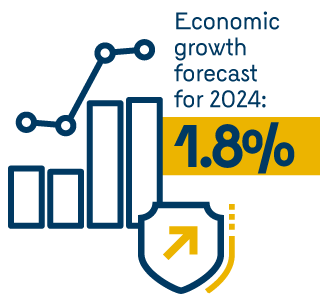 - In the first quarter, the economy saw an annual growth of 0.9%, slightly higher than that observed at the end of 2023. This growth reflects a consumption that continued relatively steady at rather high levels and investment that remained weak yet exhibited some small improvement attributable to investment in machinery and infrastructure works. The positive performance of exports also contributed to the economy's improved performance.