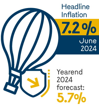 During the second quarter, headline inflation remained stable, while core inflation (the measure of inflation that excludes temporary movements in the prices of food and regulated items) continued to decline. The aggregate effects of monetary policy, together with low exchange rate pressures, would contribute towards maintaining inflation’s downward trajectory, moving it closer to the 3.0% target by yearend 2025. Economic activity levels would continue to recover for the remainder of 2024 and moving into 2025. As long as inflation and its expectations continue to distinctly converge towards the 3% target, monetary policy can assume a less restrictive stance and contribute further towards the recovery of economic activity.