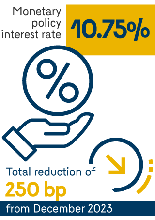 - Despite a brief standstill observed in the second quarter, inflation would continue to decline gradually and converge to the 3.0% target by the end of 2025. The cumulative effects of monetary policy efforts, low exchange rate pressures, still weak economic activity and the presence of excess productive capacity would contribute to this decline.