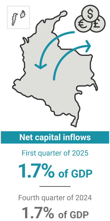 Net capital inflows in the first quarter of 2025 represented 1.7% of GDP, as in the previous quarter.