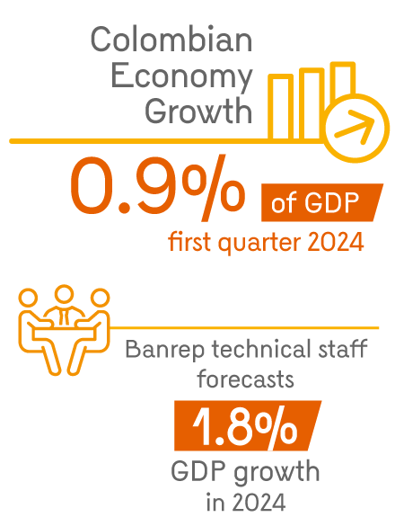 • In the first quarter of 2024, DANE figures showed that the economy achieved annual growth of 0.9%. Although the result was moderate, it confirmed the economy's recovery path after the annual contraction in the third quarter of 2023 (-0.7%), followed by 0.4% annual growth in the last quarter of the previous year.